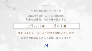 12月27日(土)から1月4日(日)まで休業とさせていただき、