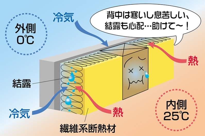また、壁体内に通気層を設けているので柱や梁などの木部が湿気を帯びにくく、壁体内結露の発生を抑制。躯体そのものの長寿命化にもつながっています。