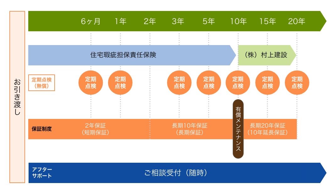 お客様が住み始めてからも住まいのメンテナンスは必要なものと考え、アフターサービスの日程を設けてあります。