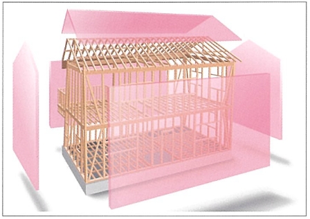柱・梁をすっぽり断熱でつつむため、構造躯体部分での温度差が小さく、結露も極めて起きにくくなります。