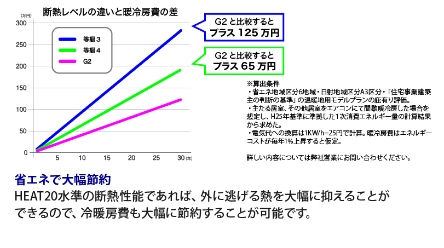 住まいの気密・断熱性は、住んだ後の冷暖房費用の差となって表れます。等級3の一般的な新築住宅と比べると、M-SET工法標準仕様の家の冷暖房費はその2/3ほど。EX仕様の家なら、半分ほどの費用で賄えます。