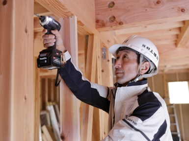 村上建設の家は、「自然素材」と「手しごと」にこだわる木の住まい。家の要となる木工事の施工は自社大工が担っています。