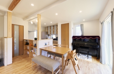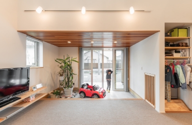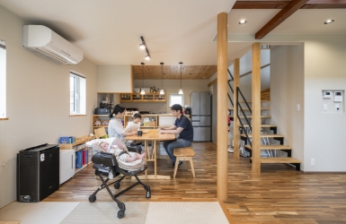 家族で過ごす時間はとても大切。自然に集い、会話が弾むよう、皆で過ごす場所を一番心地いい場所にデザイン。リビングを暮らしの中心に据えています。コミュニケーションが楽しくなるプランです。